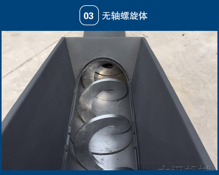 該設備采用無軸螺旋式,當物料從輸送機的進料斗進入,依靠螺旋葉片的旋轉將物料推移滑行,沿U型輸送槽送至出料口,并與壓榨機或垃圾小車配套,將物料進行下一步處理。