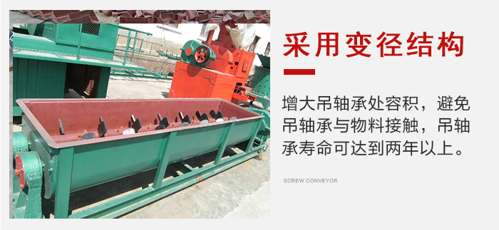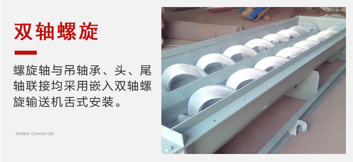 螺旋軸與吊軸承、頭、尾軸聯接均采用嵌入雙軸螺旋輸送機舌式,安裝、拆卸不需要軸向移動,維修方便。芯軸長、吊掛少、故障點少。