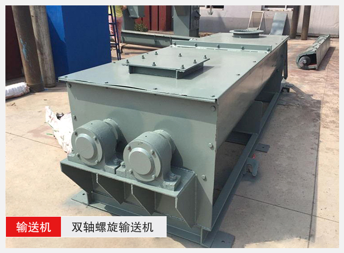 雙螺旋輸送機就是有兩根分別焊有旋轉葉片的旋轉軸的螺旋輸送機。說白了,就是把兩個螺旋輸送機有機的結合在一起,組成一臺螺旋輸送機。
