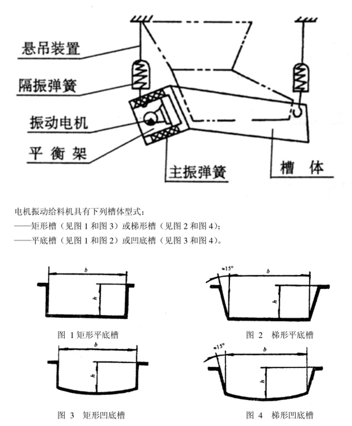 電磁振動給料機是一個較為完整的雙質墊定向強迫振動的彈性系統, 整個系統工作在低臨界共振狀態,主要利用電磁激振器驅動槽體以一定的傾角做往復振動,使物料沿槽移動。