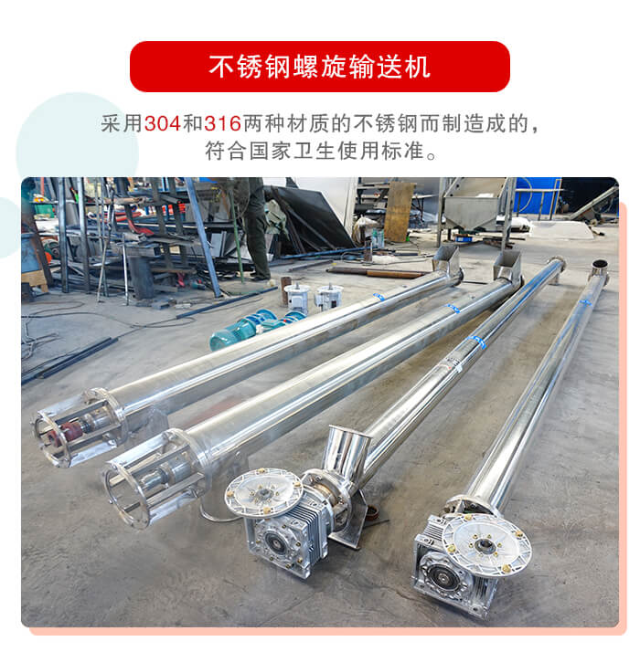 綜上所述,食品行業(yè)可選擇不銹鋼螺旋輸送機,干凈衛(wèi)生、不會污染物料,輸送環(huán)境好,而且輸送效果好。
