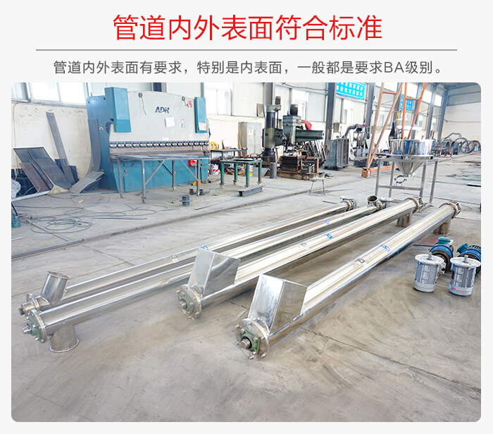 除了材質(zhì)以外,還對管道內(nèi)外表面有要求,特別是內(nèi)表面,一般都是要求BA級別,管道表面的光潔標準主要有AP、BA、EP三種,EP是電化學級別比較貴!所以不銹鋼螺旋輸送機使用到食品行業(yè)是可以的。