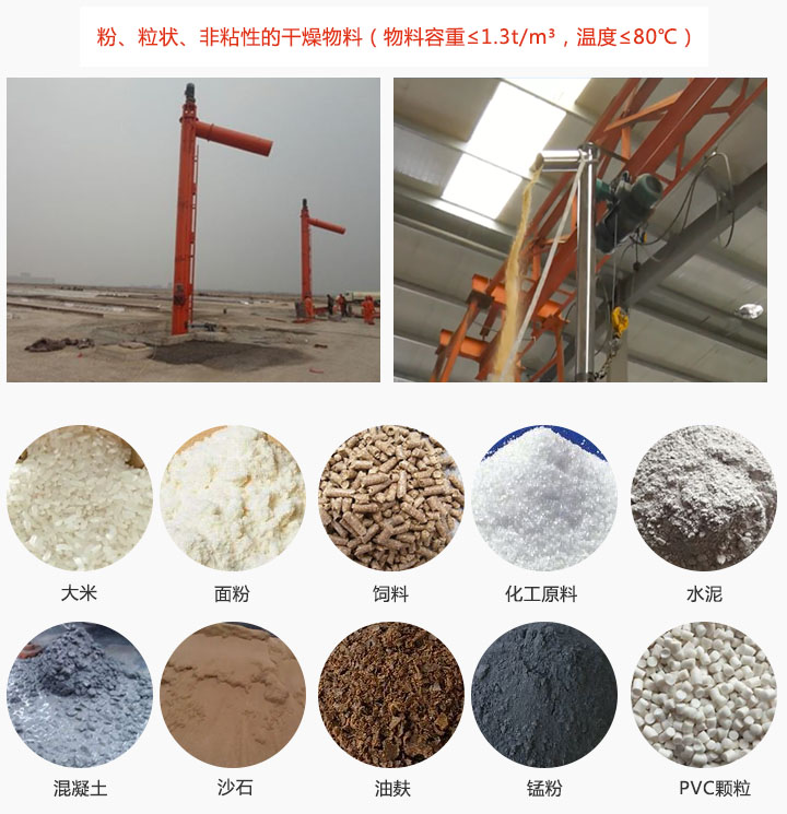 垂直螺旋輸送機可輸送大米,面粉,飼料、化工原料、水泥、混凝土等粉、粒狀、非粘性的干燥物料(物料容重≤1.3t/m³,溫度≤80℃);在輸送同時也可對物料進(jìn)行干燥和冷卻等功能。