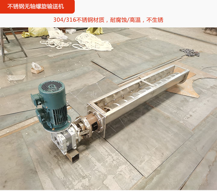 不銹鋼無軸螺旋輸送機:304/316不銹鋼材質,耐腐蝕/高溫,不生銹,食品、醫藥行業專用。