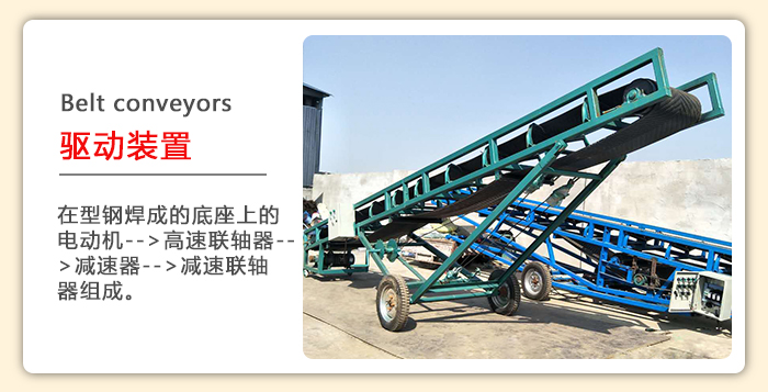 1.驅動部分:系由裝置在型鋼焊成的底座上的電動機-->高速聯軸器-->減速器-->減速聯軸器組成。根據布置要求:驅動裝置設有左裝和右裝兩種,另外本公司配有功率1.5KW到13KW,速度0.80、1.0、1.25的油冷式電動滾筒。
