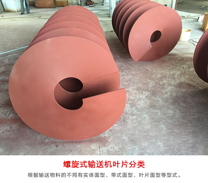 螺旋式輸送機旋轉軸上焊的螺旋葉片,葉片的面型根據輸送物料的不同有實體面型、帶式面型、葉片面型等型式。