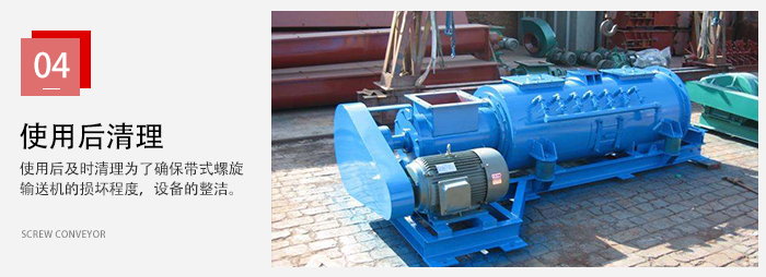 在帶使螺旋輸送機(jī)的,每次使用結(jié)束后,要注意螺旋輸送機(jī)的清理工作,這也是為了確保帶式螺旋輸送機(jī)的損壞程度,以及下次使用時物料的干凈。