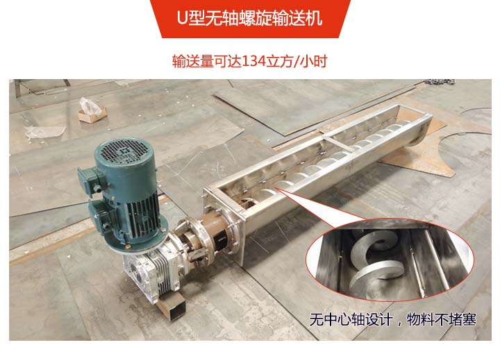 U型無軸螺旋輸送機也叫U型無軸螺旋給料機,采用無中心軸設計,通常適用于城市污水廠、 水質凈化廠、垃圾處理廠等輸送機械格柵除污機攔截下來的柵渣、壓榨機、壓濾機處理后的泥餅等物料。