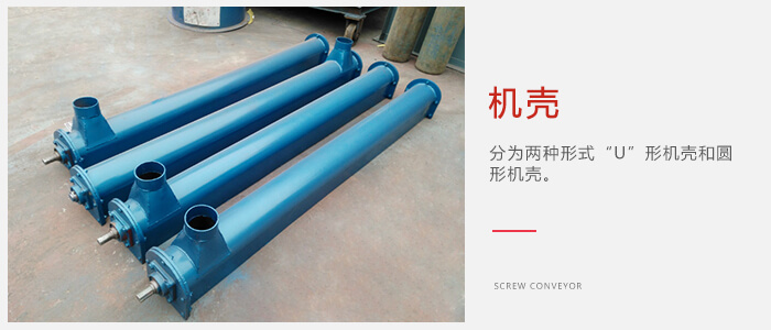 機殼:分為兩種形式“U”形機殼和圓形機殼,圓形機殼主要是用作密封設備進料,圓形機殼的絞龍又叫密封絞龍。